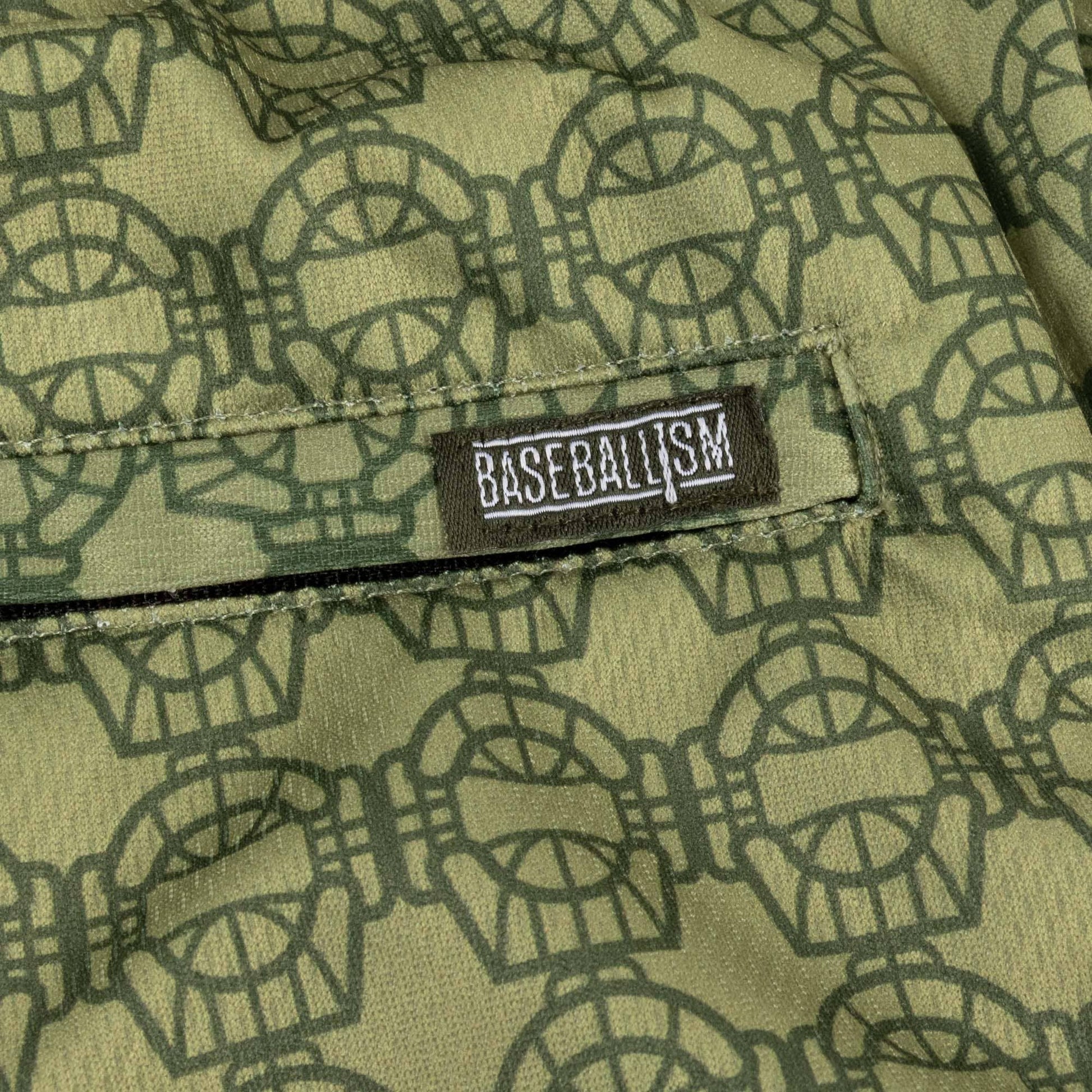 Patterned catcher's masks are printed throughout this ultra comfortable pair of mesh shorts.